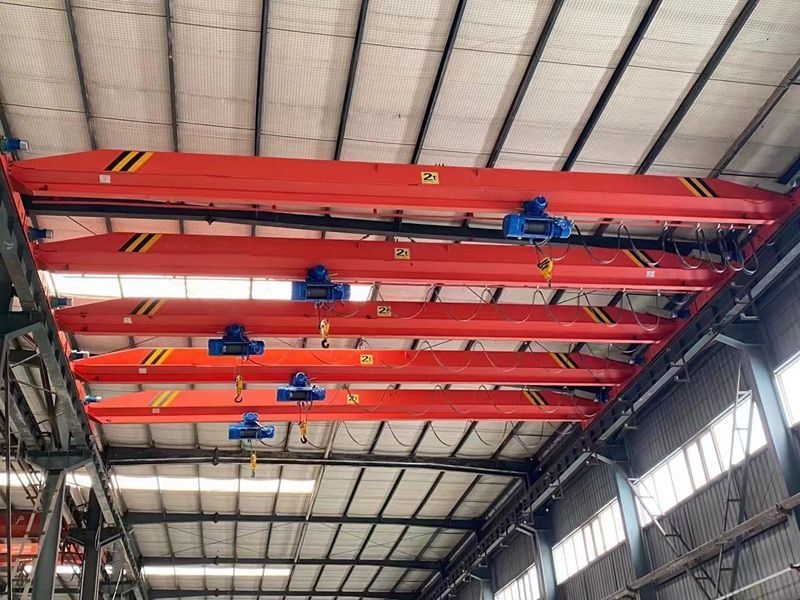 雙梁橋式起重機的安全檢查為了保證橋式起重機的安全運行,在起重機運行期間需進行一些安全常規檢查,檢查項目及要點如下: ?。?) 起升高度限位器、行程限位開關及各聯鎖機構性能正常,安全可靠?! 。?) 各主要零部件符合安全要求:開口增大小于原尺寸的15%,扭轉變形小于10%;板鉤襯套磨損小于原尺寸的50%,板鉤心軸磨損小于5%,無剝落、毛刺、焊補。吊鉤掛架及滑輪無明顯缺陷。鋼絲繩表面鋼絲磨損、腐蝕量小于鋼絲直徑的40%,斷絲在一個捻距內小于總絲數的10%,無斷頭,無明顯變細,無芯部脫出、死角扭擰、擠壓變形、退火、燒損現象。鋼絲繩端部連接及固定的卡子、壓板、鍥塊連接完好,無松動,壓板不少于2個,卡子數量不少于3個。卷筒無裂紋,連接、固定無松動;筒壁磨損小于原壁厚的20%;安全卷不少于2圈,卷筒與鋼絲繩直徑比例符合要求。平衡輪固定完好,鋼絲繩應符合的要求。制動器無裂紋,無松動,無嚴重磨損,制動間隙兩側相等尺寸合適,有足夠的制動力,制動帶磨損小于原厚度的50%?! ⊥ㄟ^對雙梁橋式起重機的安全常規檢查,對杜絕人身事故,減少設備事故,提高設備運轉率,降低檢修費用等均起到了顯著作用。